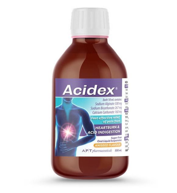 Acidex Heartburn and Indigestion Liquid provides fast effective relief from the pain of heartburn and acid indigestion.
